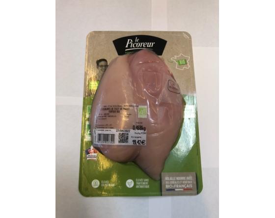 Escalope extra-fine de poulet Fermier Bio. Produit frais. Classe A