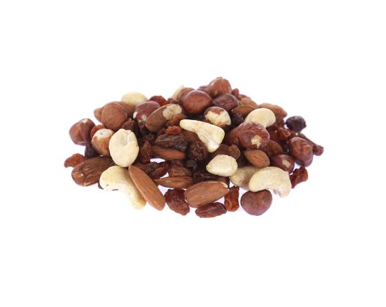 Noix de cajou, noisettes, amandes, raisins.
